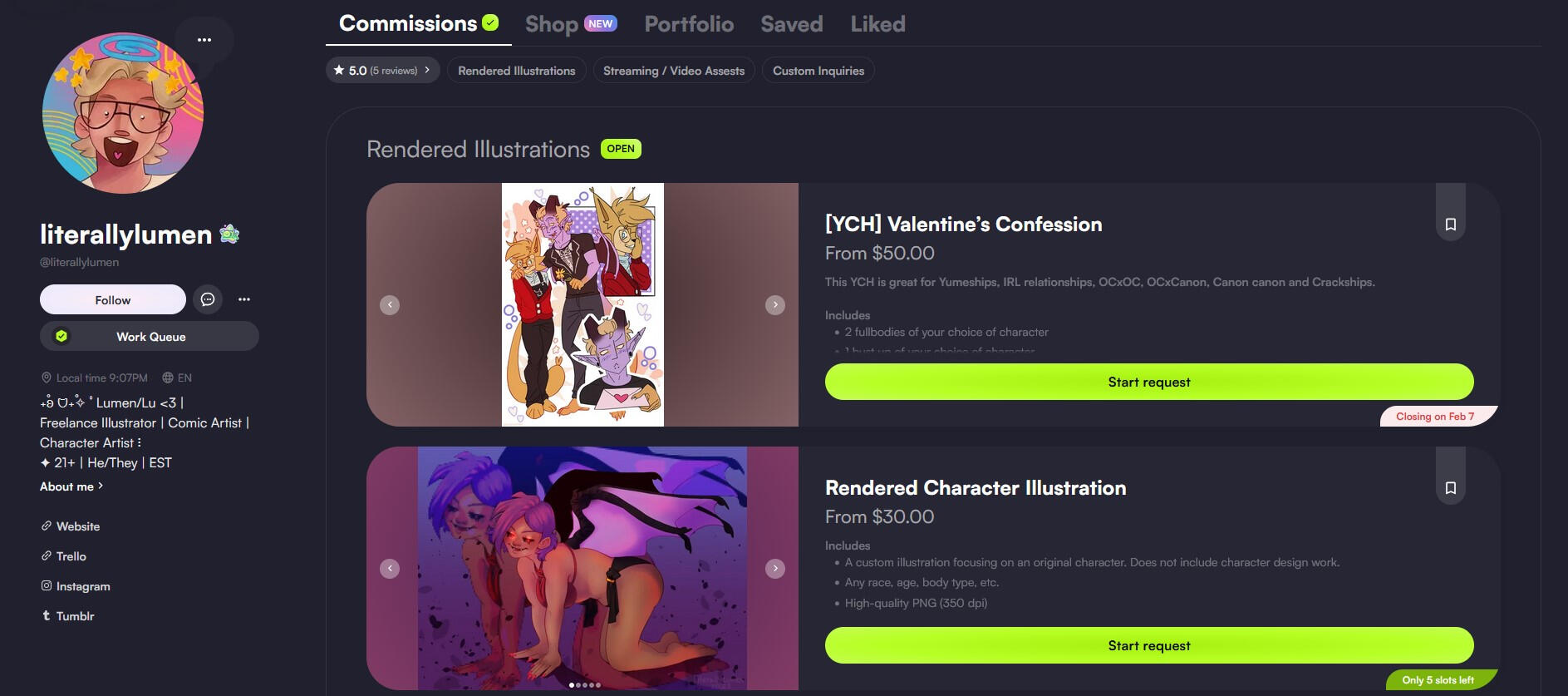 Hello! My name is Lumen (He/They). I’m an illustrator, cartoonist and sequential/character artist based out of Detroit, graduating with a Bachelor’s of Fine Arts in 2026 in illustration. You may be familiar with my mascot Artie! I love drawing him whenever I can, so if you see him, I'm probably not far!For the majority of my career as an artist, I’ve mainly worked